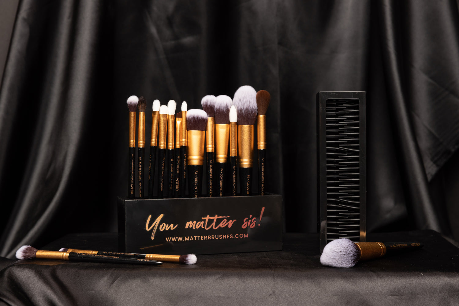 You don't have to question your next step. Just follow the numbers and names on the makeup brushes.