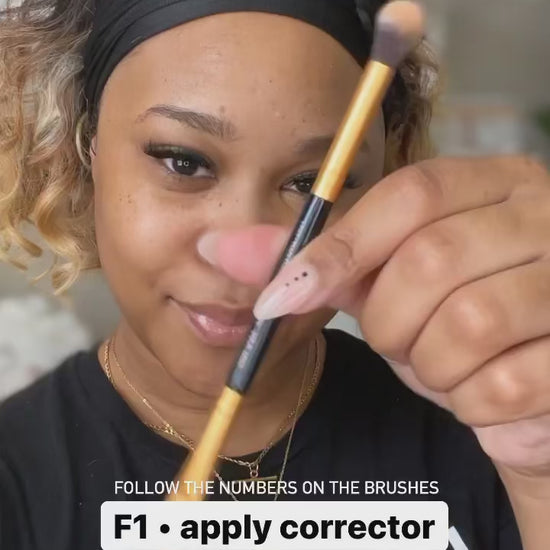 This 13pc "OG" makeup brush set was created as a system to guide you (the makeup beginner) to a flawless look. Each makeup brush is numbered so you have a clue as to what to apply next. Crafted by a makeup artist professional, these brushes are shaped to get you a better blend faster.